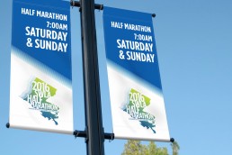Isle of Capri Casino Hotel Lake Charles sponsored the South West Louisianna Half Marathon in 2016. As part of their campaign to publicize the race, a logo was developed as well as outdoor signage and customized sports drink bottles. The logo playfully sets the Louisianna state as a runner’s foot in motion. A contrasting, sporty palette was chosen to appeal to an athletic demographic.